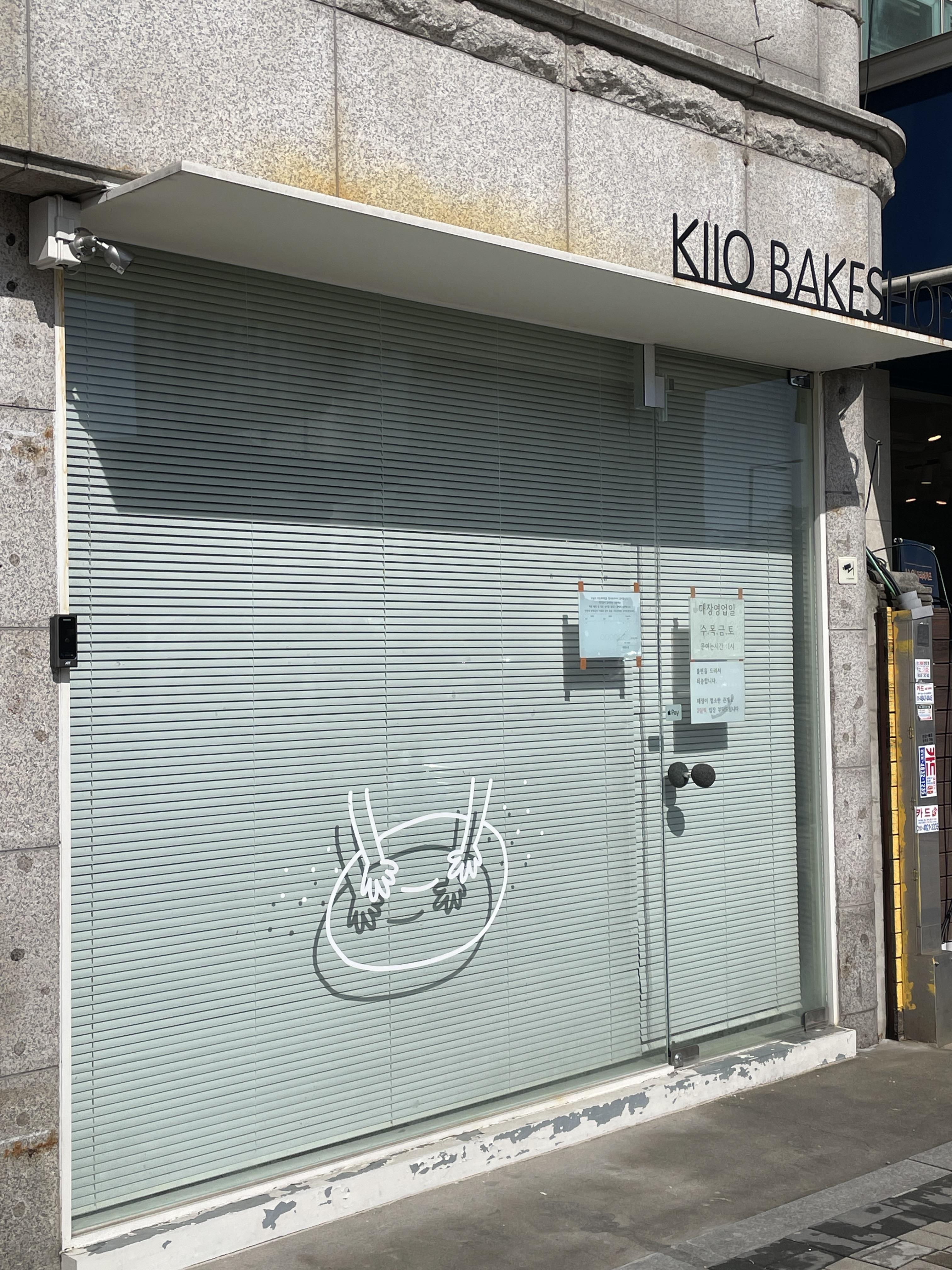 수, 목, 금, 토요일에만 여는 디저트 샵 <키오 과자점>은 오후 1시부터 영업 시작됩니다. 제가 도착한 시간은 1시 10분 전인 12시 50분이었는데 미리 줄 서 있는 분들이 계셨어요. 영업 전에는 블라인드를 내려놔서 내부를 볼 수 없었고, 딱 영업 시작 시간인 1시에 블라인드를 올리시더라고요!