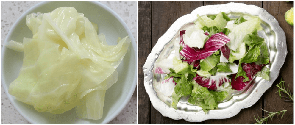 - 양배추 잎을 찢어 씻고 랩에 싸서 전자레인지에 2~3분 돌리면 완성!